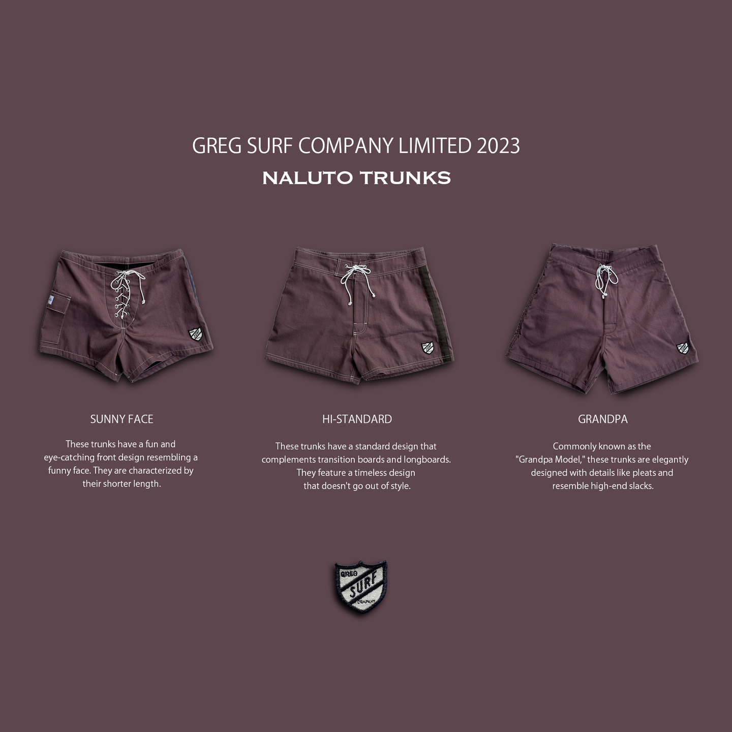 50年代後半から60年代前半をイメージしたモダンクラシックな店内には、 櫛本喜彦、ジム・フィリップス、ジーン・クーパー、スティーブン・マスト、スキップ・フライ、エリック・ウォルデン、マイケル・ミラー など、クラシックなロングボードやクラシックガン、60年代中半以降から70年代のミッドレングスなど個性的なボードを取扱う。ウエットスーツは、上質で柔らかく機能的なオリジナルのブラックスキンのBLACK HEADSと、ジャージ素材のOLDGRADSを提案。 トランクスにおいては、まるであつらえのスーツに身を包むようにフルオーダー可能なNALUTO TRUNKS を。GREGのフィルターをとおした良質な国内外でのコラボレーション商品、オリジナルのクロージングやグッズも展開。レジェンドシェイパーがシェイプするボードがずらりと並ぶ、トラディショナルなサーフショップ。