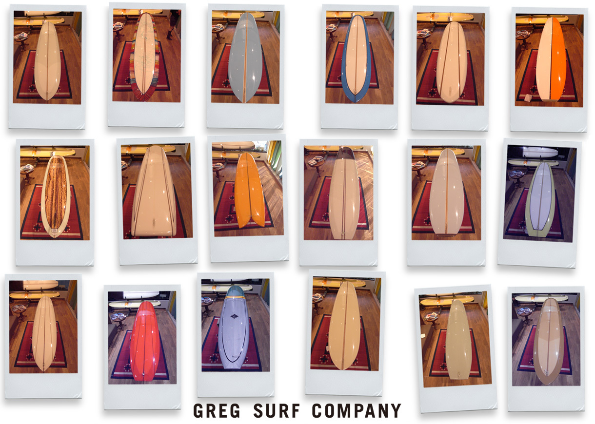 50年代後半から60年代前半をイメージしたモダンクラシックな店内には、 櫛本喜彦、ジム・フィリップス、ジーン・クーパー、スティーブン・マスト、スキップ・フライ、エリック・ウォルデン、マイケル・ミラー など、クラシックなロングボードやクラシックガン、60年代中半以降から70年代のミッドレングスなど個性的なボードを取扱う。ウエットスーツは、上質で柔らかく機能的なオリジナルのブラックスキンのBLACK HEADSと、ジャージ素材のOLDGRADSを提案。 トランクスにおいては、まるであつらえのスーツに身を包むようにフルオーダー可能なNALUTO TRUNKS を。GREGのフィルターをとおした良質な国内外でのコラボレーション商品、オリジナルのクロージングやグッズも展開。レジェンドシェイパーがシェイプするボードがずらりと並ぶ、トラディショナルなサーフショップ。