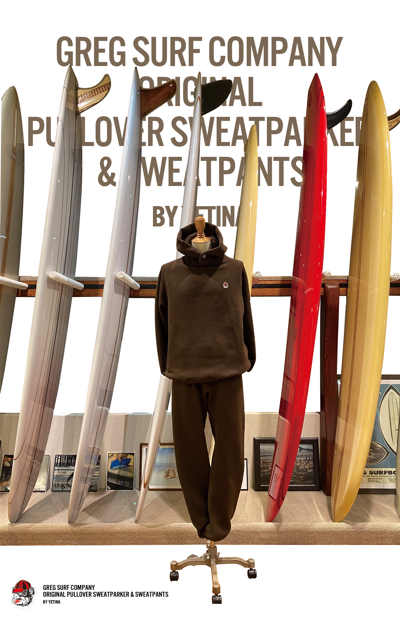 音楽や装いも含め、その時代を味わいたいと思う事でサーフィンの文化的レベルが上がることを目標とし、GREG SURF COMPANYのコンセプトとしています。